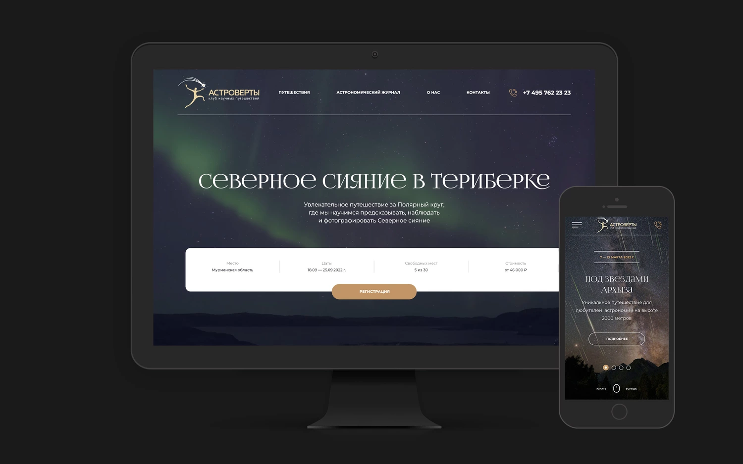 Для продвижения путешествий «Астровертам» нужен был сайт, который выделил бы все ключевые преимущества, был бы удобен для организации рекламных кампаний и имел бы потенциал развития.
