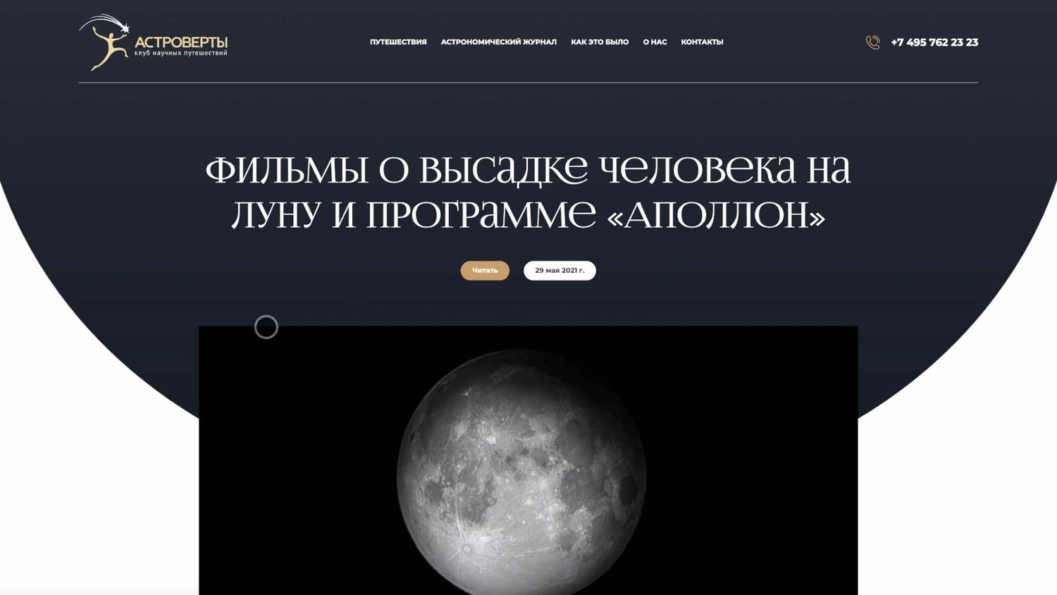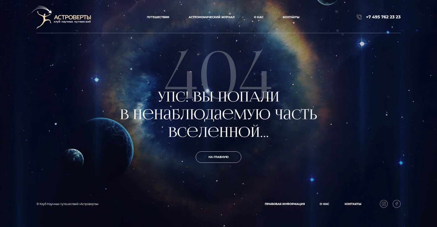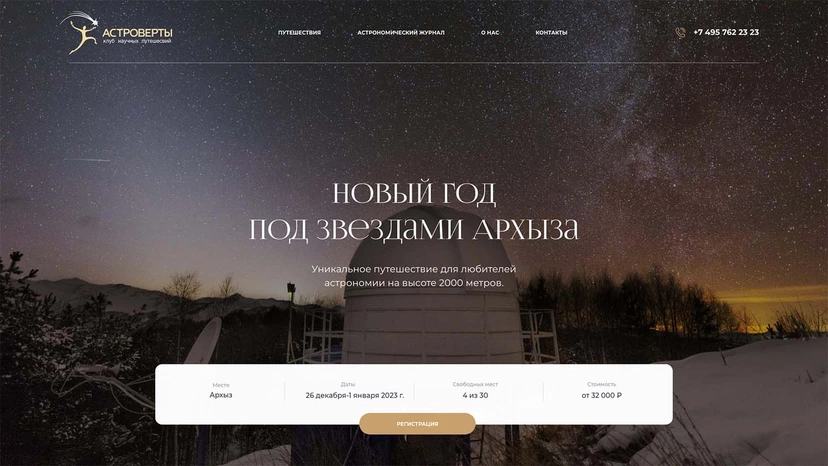Мы разработали сайт клуба научных путешествий «Астроверты», который вдохновляет людей открыть для себя смысл путешествий с новой стороны, получить практический опыт в астрономических наблюдениях и узнать больше о мире, где мы живем.