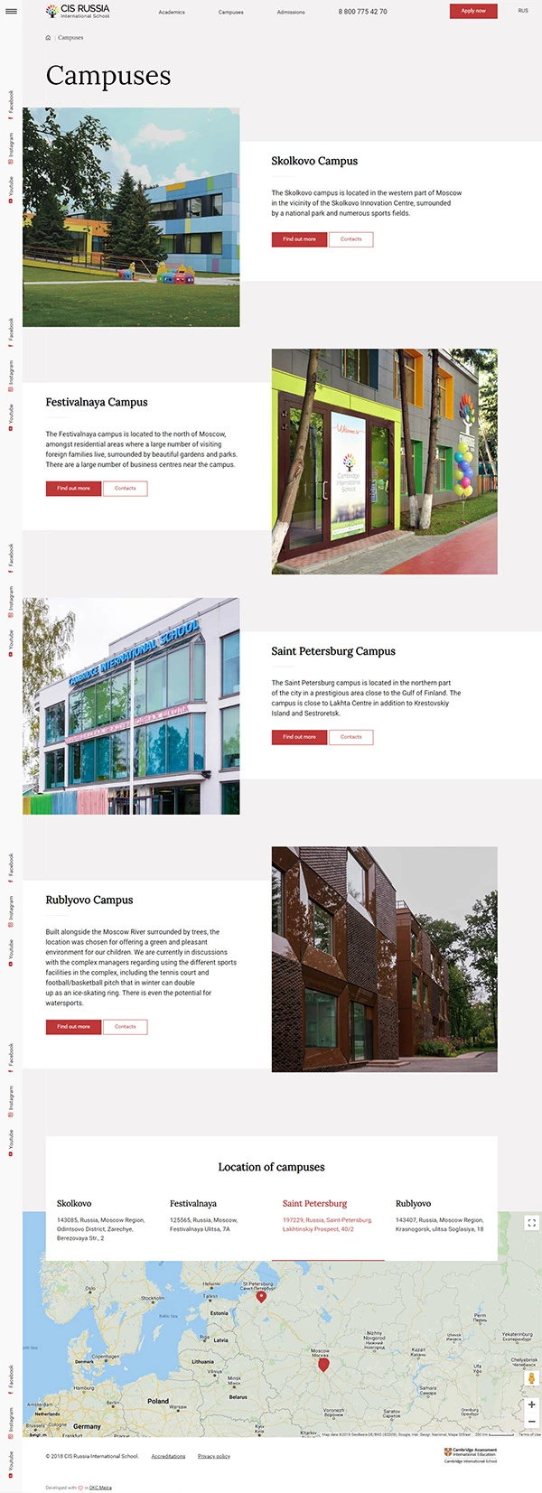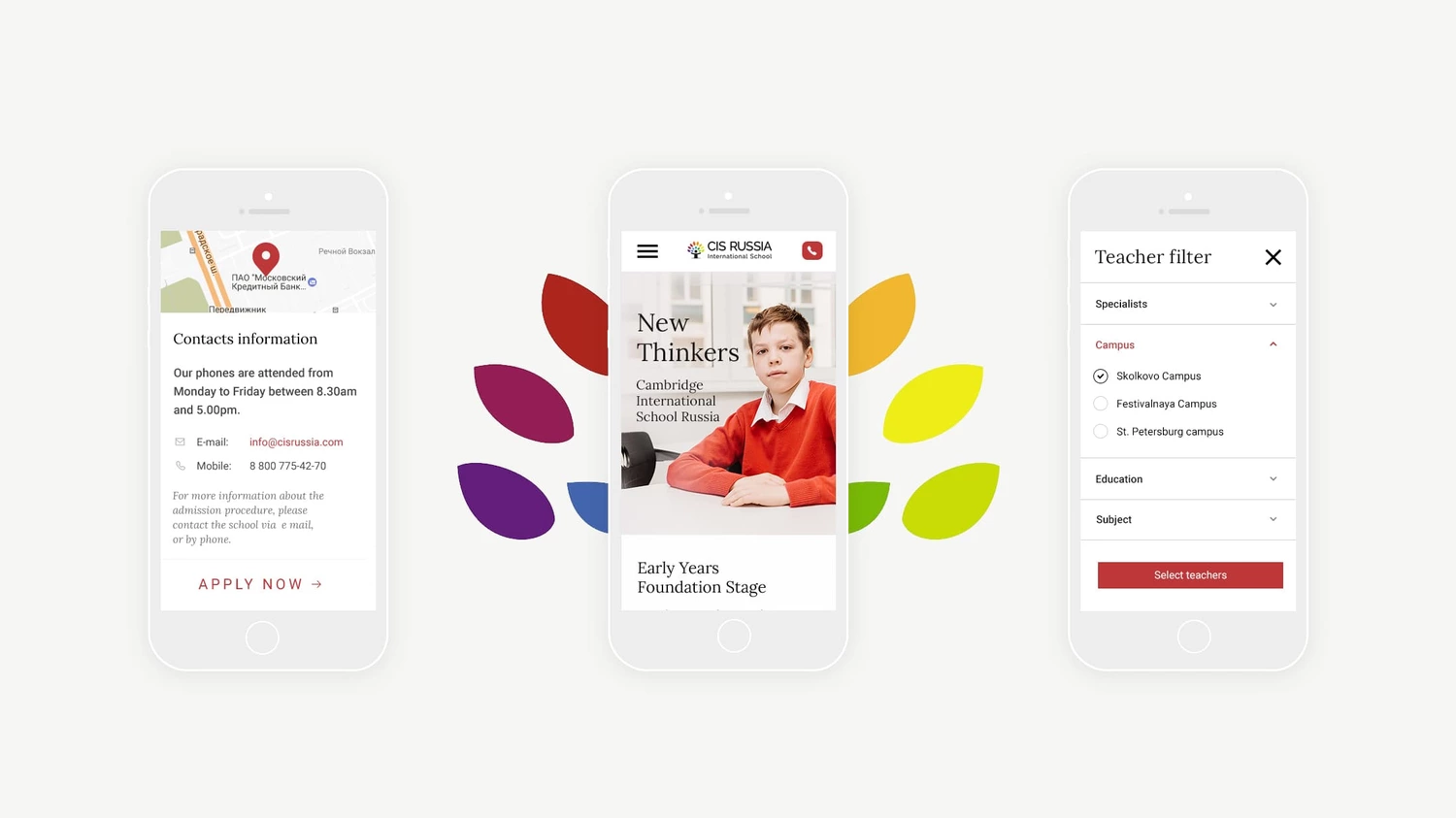 Благодаря сотрудничеству с командой маркетинга Кэмбриджской Международной Школы мы провели интервью с администраторами кампусов и опросы родителей. Эта обратная связь помогла построить информационную архитектуру сайта так, чтобы отразить ожидания пользователей.