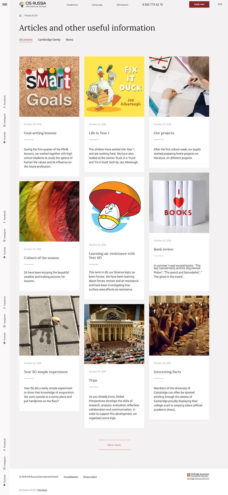 Поэтому мы предложили преобразовать несколько сухой раздел Новости в «Мир CIS», раздел, который отражает тот яркий и насыщенный мир в котором живет школа. В нем публикуются не только новости, но вдохновляющая, интересная информация для родителей будущих и настоящих учеников.