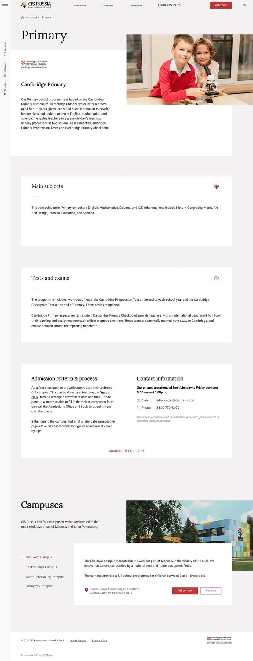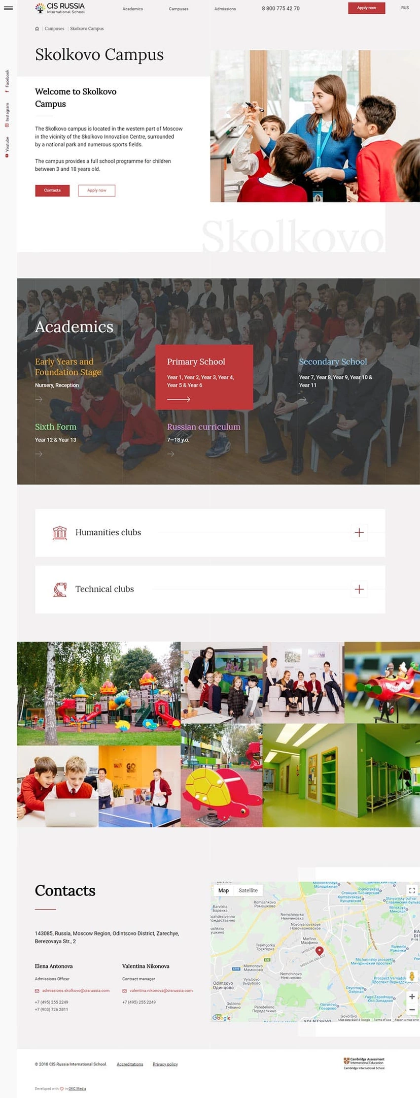У школы множество телефонов и ответственных лиц, поэтому мы сразу даем короткий путь, например, если посетитель смотрит кампус — мы даем телефон и почту администратора кампуса, а если общую информацию о школе — то контакты головного офиса.