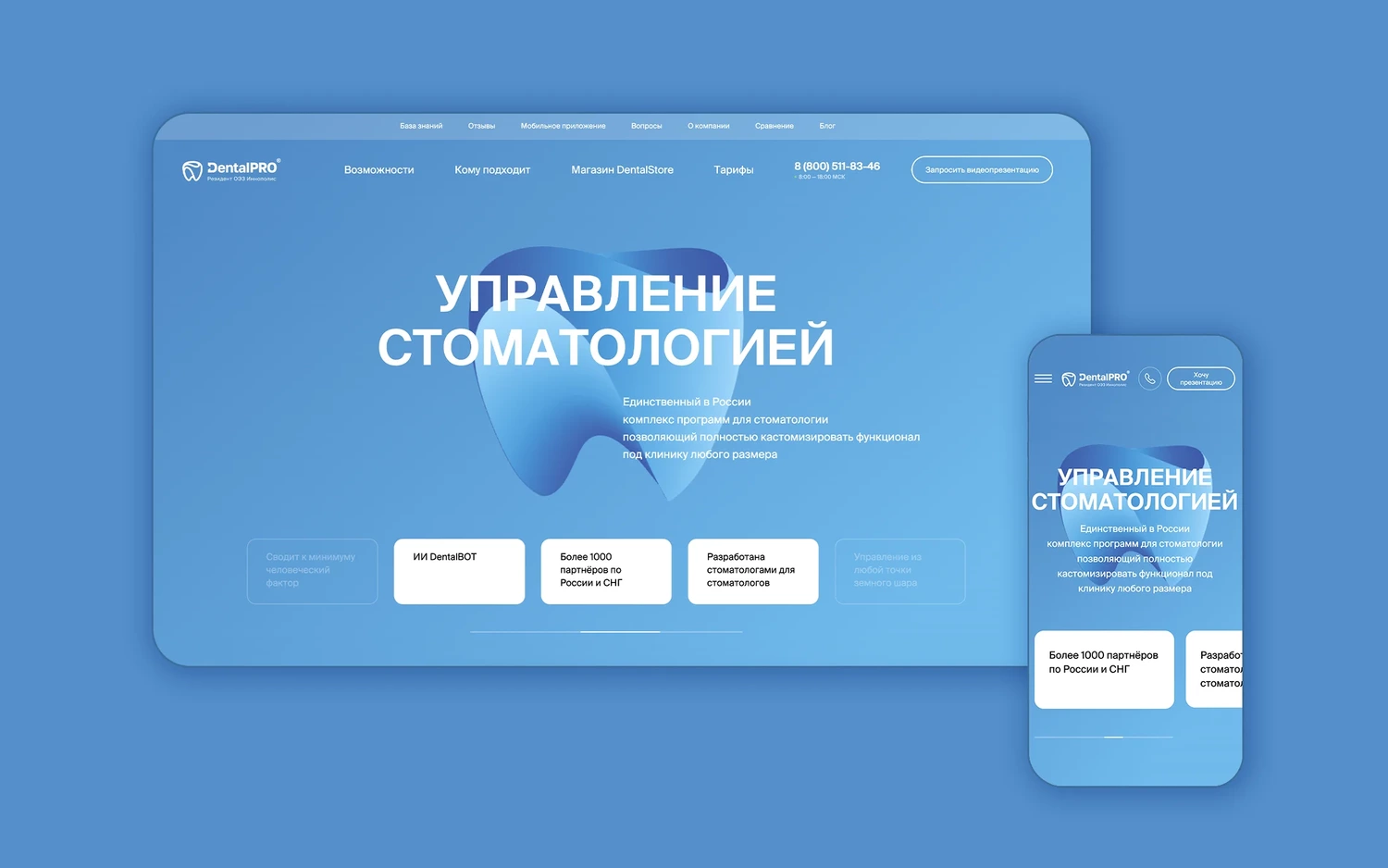 Новый сайт DentalPRO стал полноценной цифровой точкой входа в продукт: он отражает глубину возможностей системы, демонстрирует конкурентные преимущества и работает на разные типы пользователей — от врача до владельца клиники.