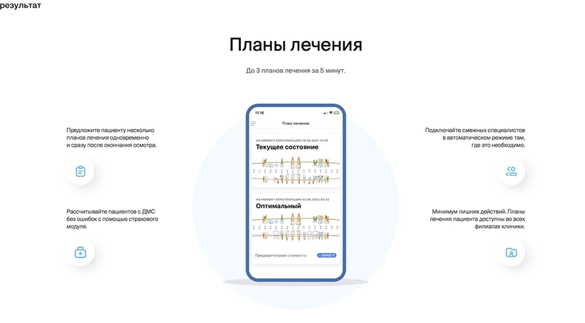 функций, среди которых: электронная медицинская карта, зубная формула,