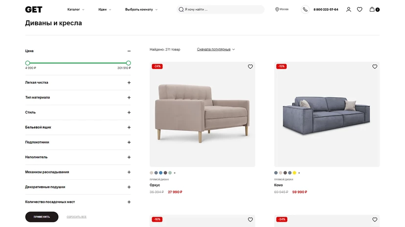 Вместе с командой интернет-магазина GET.ru мы объединили функциональность, дизайн и вдохновение, чтобы помочь покупателю мебели создать интерьер своей мечты.