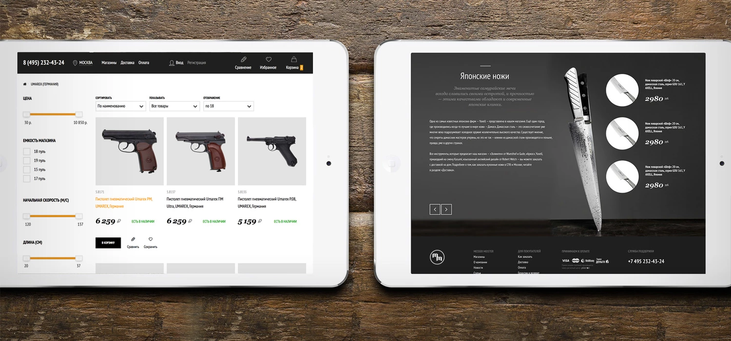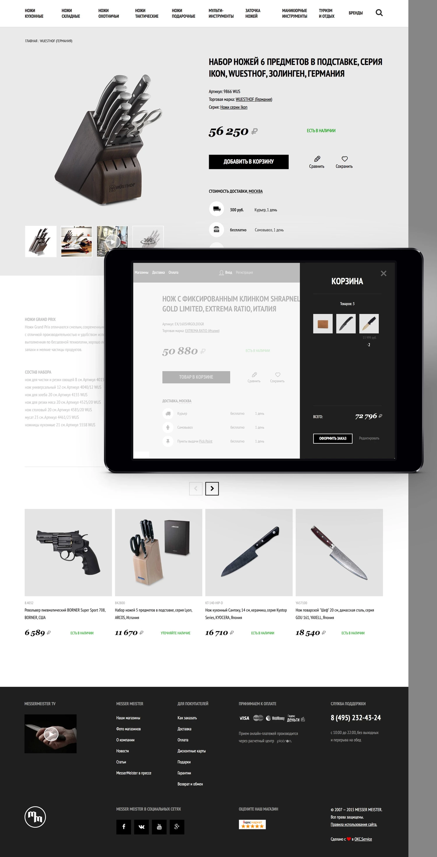 Интернет-магазин Messer Meister построен на актуальных паттернах взаимодействия и сделан доступным для десктопов и планшетов, в том числе с retina-экранами.