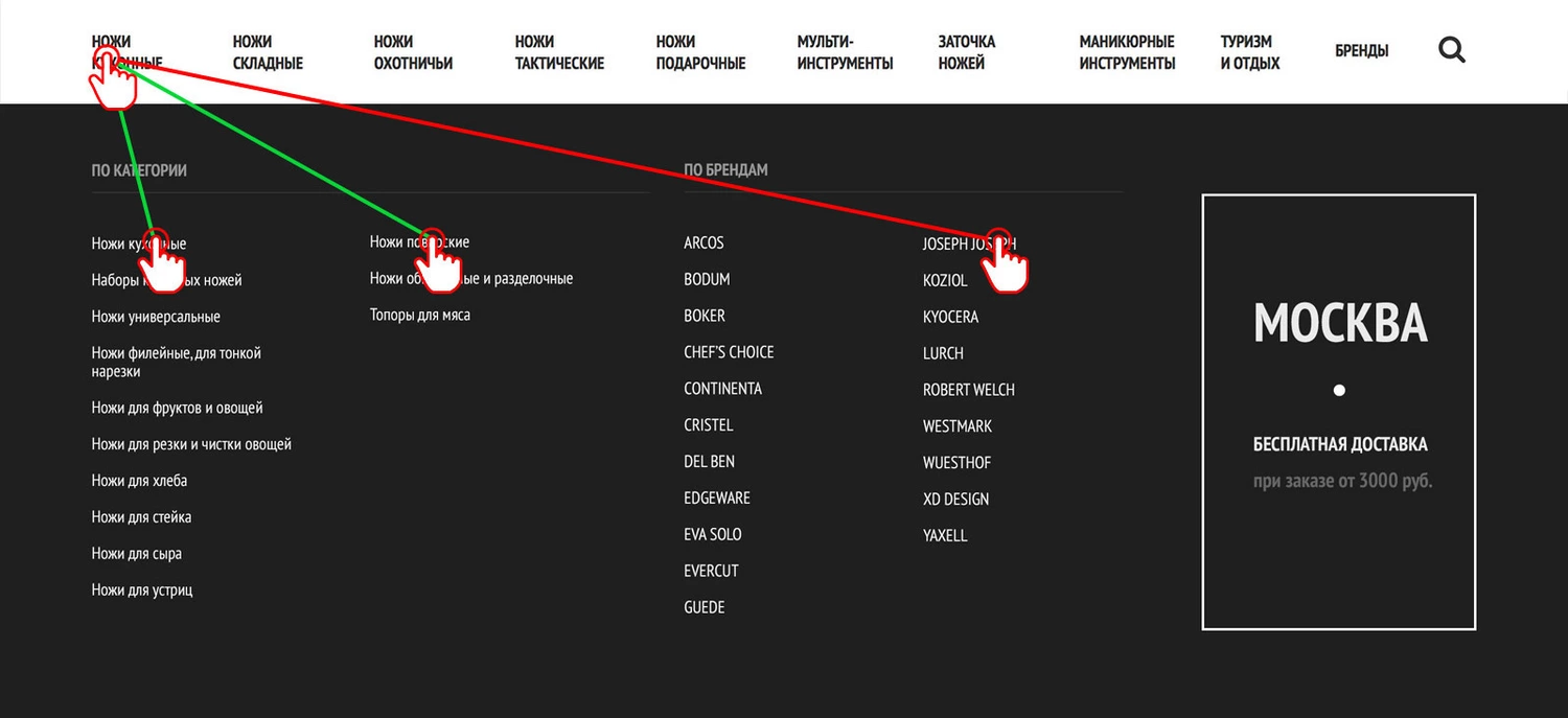 Сайт создан для двух основных групп пользователей: опытных найфоманов, которые разбираются в особенностях технологий и производителях и любителях, которые в первую очередь ориентируются на назначение товара и его внешний вид.